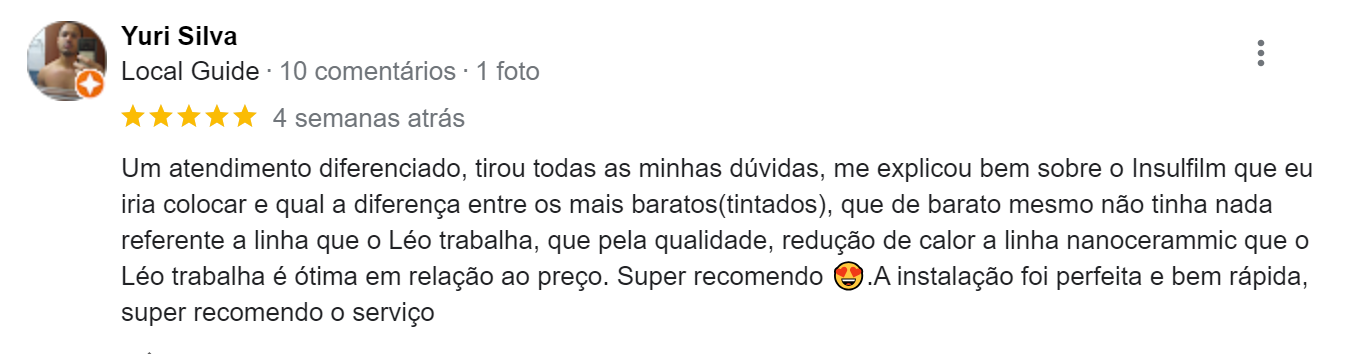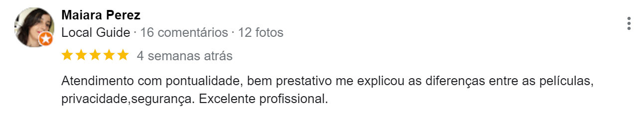 Sim. nos comprometemos em visitar nossos clientes para entender o ambiente a ser aplicado a película de insulfilm, assim podemos orientar na melhor escolha e dentro do orçamento desejado.