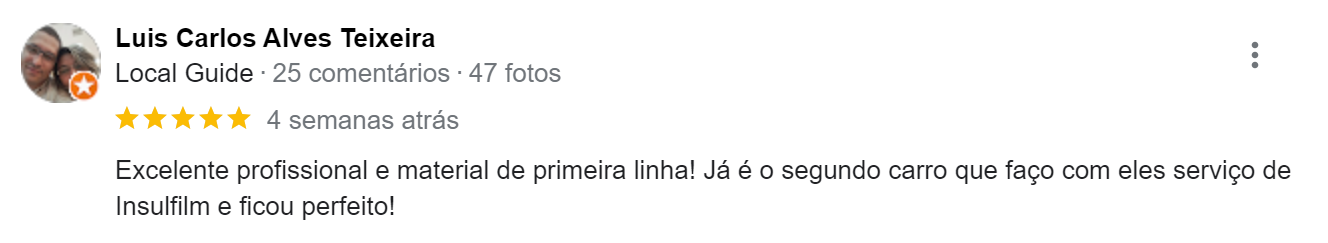 Somos especializados em colocação de películas de Insulfilm há mais de 7 anos. Trabalhamos com películas de alta tecnologia que garantem controle de calor, proteção UV, maior visibilidade e privacidade. Todas com certificado de garantia de autenticidade - entregue diretamente ao cliente.